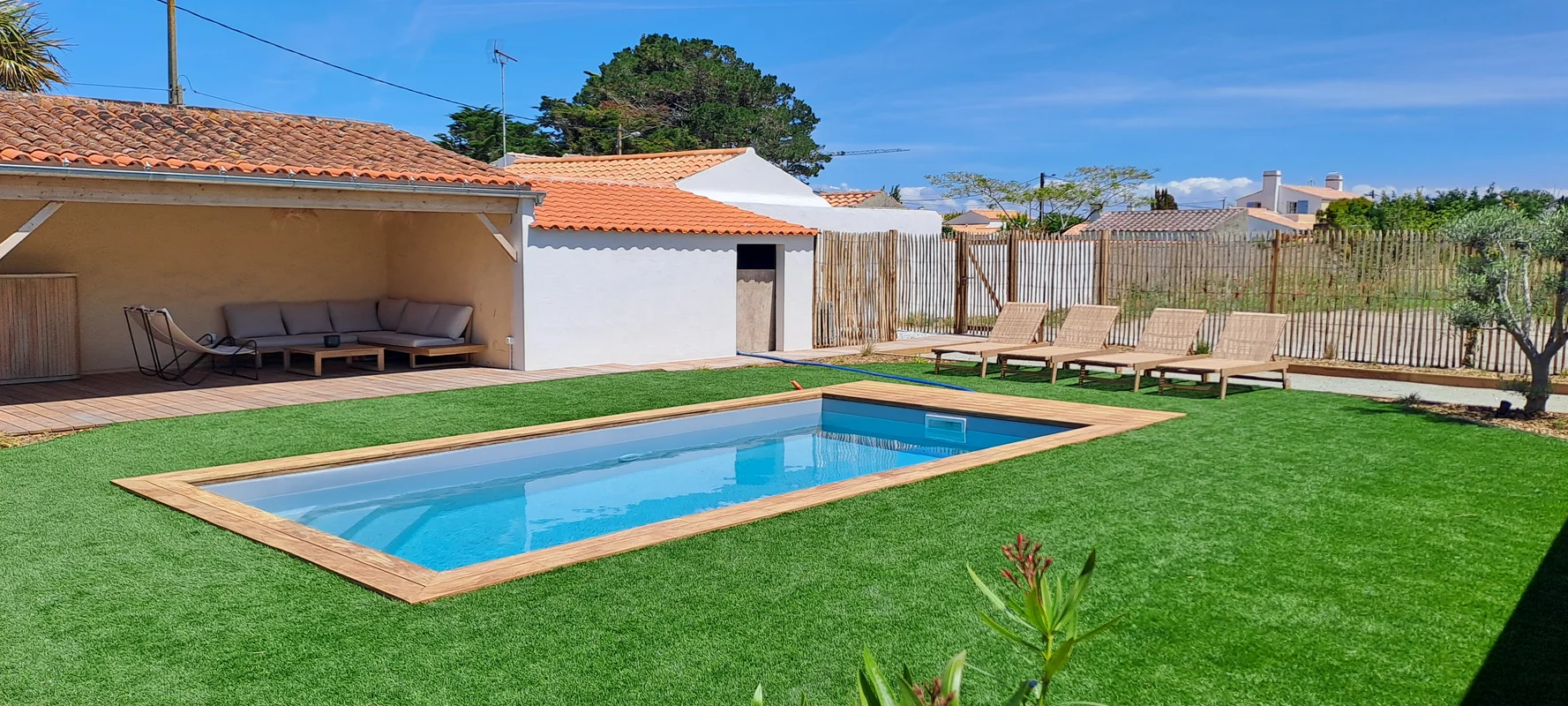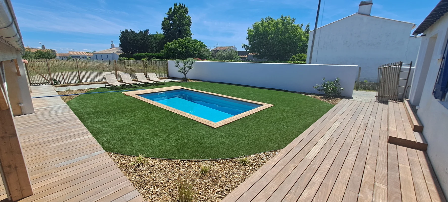 Nous vous aidons à aménager vos espaces extérieurs en Vendée avec des terrasses, des murs de clôtures et des piscines sur mesure.
